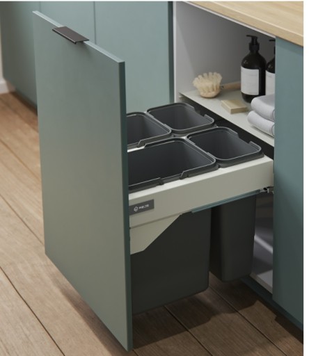 do szafek o szer. 450 mm - 500 mm i głębokości 480 mm - zestaw 2 pojemników na śmieci o pojemności 15 litrów (wys. 320 mm), zestaw 2 pojemników o pojemności 20 litrów (wys. 425 mm;