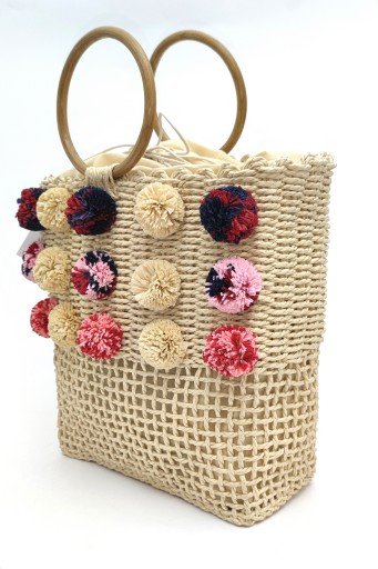 Сумка-корзина с помпонами из рафии
