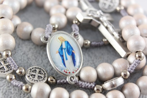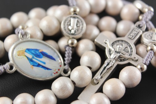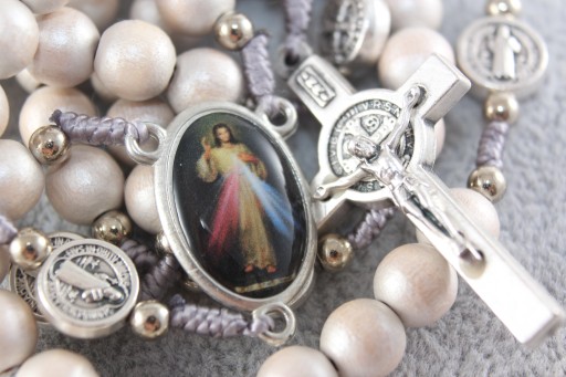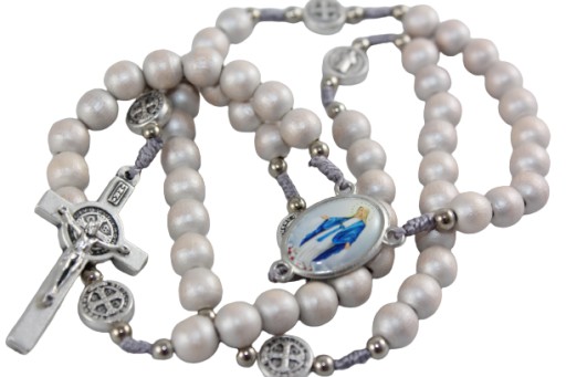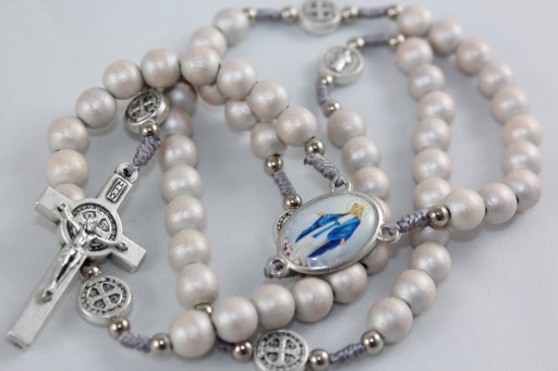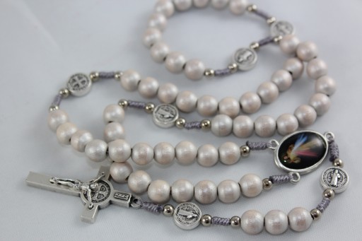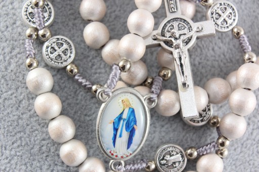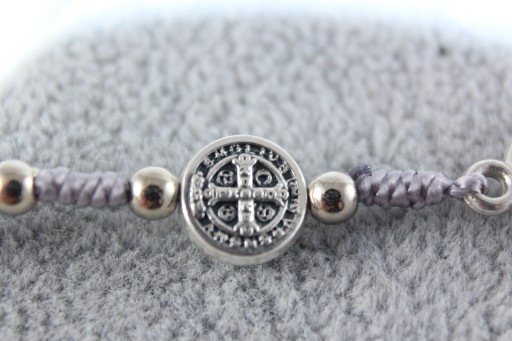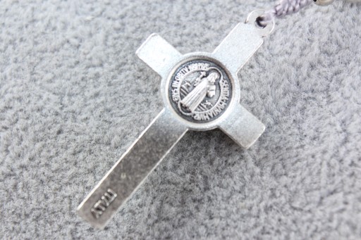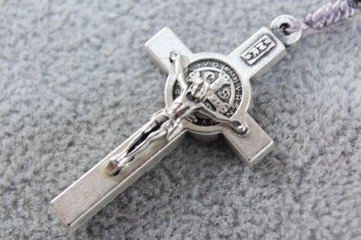 - Każda dziesiątka przedzielona metalowym medalem św. Benedykta w rozmiarze ok. 10 mm