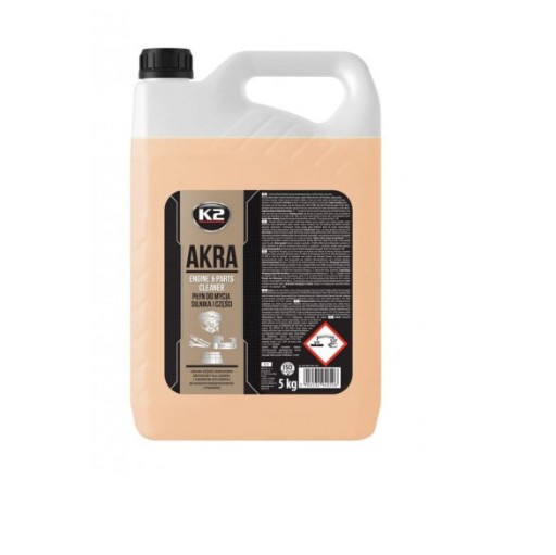 K2 AKRA sprawdzony przez miliony klientów na całym świecie, płyn do mycia silnika i innych mocno zabrudzonych podzespołów samochodu. Jest produktem przeznaczonym do usuwania zaschniętych osadów, zacieków z płynów eksploatacyjnych, pyłów, stwardniałego brudu i lotnej rdzy. Oczyszcza silnik i inne podzespoły samochodu, a także służy do mycia narzędzi i czyszczenia urządzeń oraz powierzchni przemysłowych.