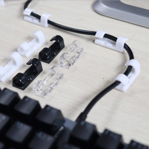 Samoprzylepny wieszak / klips służący jako organizer do kabli. Zapobiega splątaniu się kabli ułatwiając ich schludne uporządkowanie.