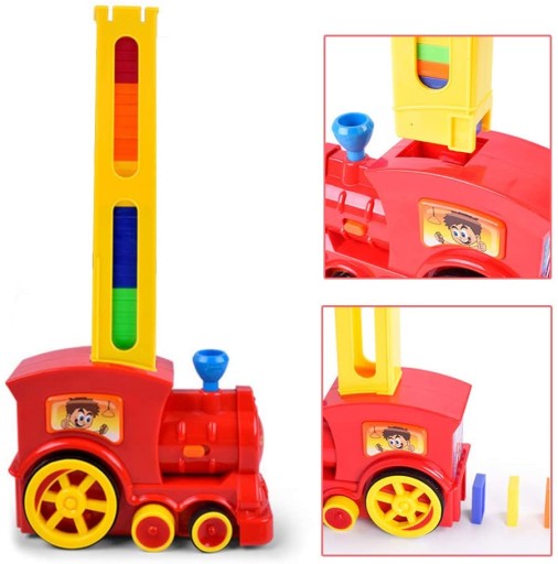 - Łatwe do umieszczenia Kostki domina są wprowadzane automatycznie, umieść kostki domino na klipsie do karty, po umieszczeniu w pociągu można je obracać za pomocą automatycznych kostek domina z wahadłem akustyczno-optycznym (wymaga 2 baterii AA, brak w zestawie).