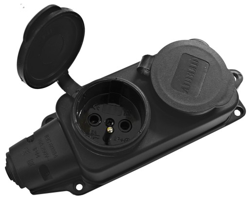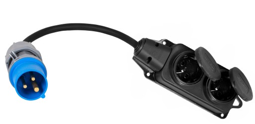 Adapter siłowy - redukcja z wtyku 16A 3P na dwa gniazda 230V 16A- listwę gumową dwójnik.