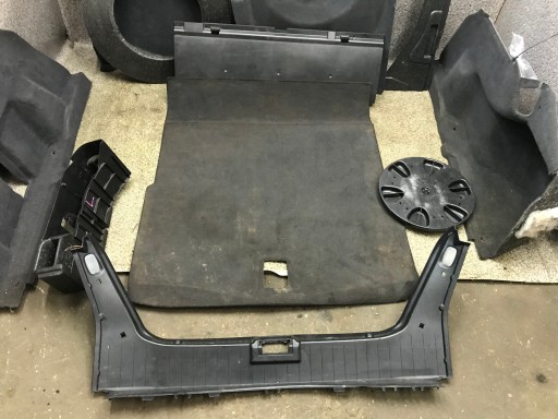 Wnetrze oryginalne i kompletne z boczkami, podloga bagaznika, schowkami, nakladka na prog, zaslepkami i pozostalymi elementami widocznymi na zdjeciach. Tapicerka w kolorze czarnym. Cena za kompletny jeden zestaw.