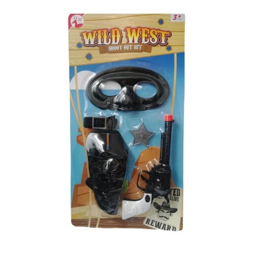 - Zestaw składa się z: pistolet z kaburą, jeden nabój, odznaka szeryfa i maska