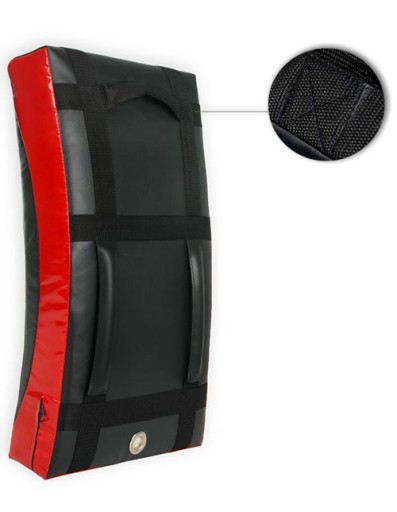 Tarcza dzięki swoim dużym rozmiarom: 62 cm x 35 cm x 12 cm idealnie sprawdza się zarówno podczas treningu kopnięć jak i technik ręcznych.Tarczę wypełniono pianką poliuretanową tzw. regeneratem czyli pianką wtórnie spienioną o twardości 90lg/m3. Wypełnienie to zapewnia bardzo dobrą amortyzacją uderzeń, zawsze wraca do pierwotnej postaci i nie kruszy się podczas intensywnych treningów.