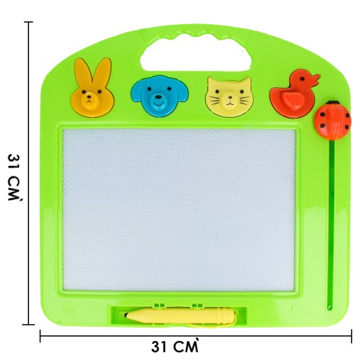 To plansza, która działa dzięki sile magnetycznej. Pod powierzchnią tablicy znajdują się opiłki żelaza – kiedy zacznie się rysować specjalnym czarodziejskim długopisem (w końcówce ma niewielki magnesik), opiłki zaczną układać się w piękny rysunek!