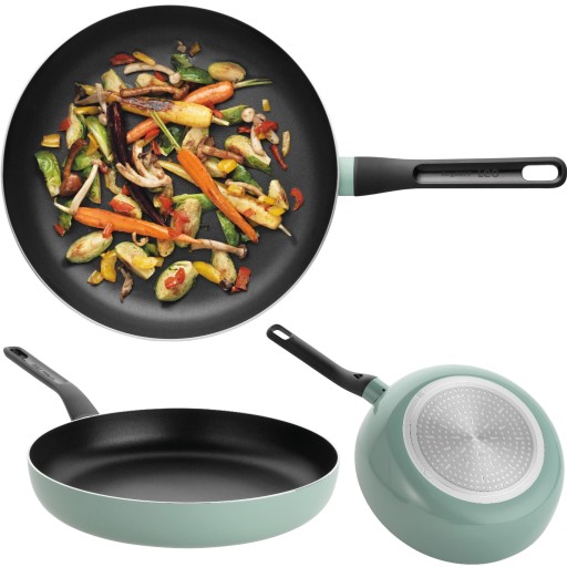 Aluminium zapewnia szybkie i równomierne rozprowadzanie ciepła. Wysokiej jakości powłoka zapobiegająca przywieraniu zapewnia wygodę łatwego wyjmowania jedzenia i jeszcze łatwiejszego czyszczenia patelni po udanym przyjęciu kulinarnym. Pasujące do siebie kolor szałwii i łupka pozwalają łączyć różne rozmiary patelni w dowolnej kombinacji.