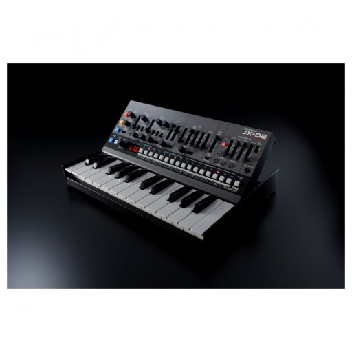 Kompaktowy JX-08 zmieści się praktycznie wszędzie i można nim łatwo sterować z poziomu klawiatury sterującej lub programu DAW. Może działać na standardowych bateriach AA przez wiele godzin nieskrępowanego grania, a także ma wbudowany głośnik do monitorowania dźwięku. Dodaj stację dokującą DK-01 Boutique Dock, aby uzyskać dopracowany wygląd i trzy wygodne pozycje pochylenia, lub chwyć klawiaturę K-25m, aby stworzyć w pełni samodzielny, przenośny instrument.