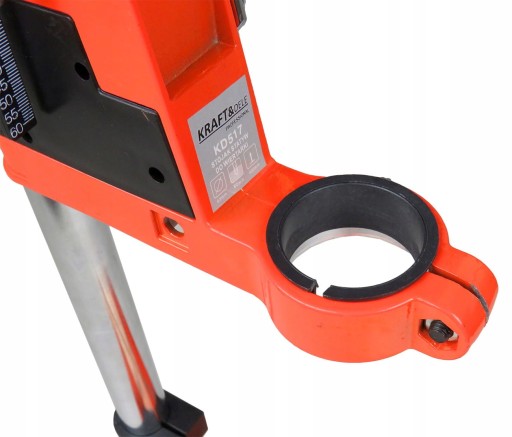 Stojak ma uniwersalne mocowanie do większości wiertarek ręcznych 25-43 mm.