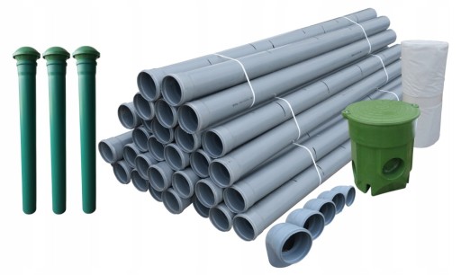 - zestaw drenażowy wykonany jest z wytrzymałych rur PCV ( nie pękają i nie kruszą się ) z wykonanymi przez nas dużymi nacięciami o gr. 5mm nie zapychającymi się