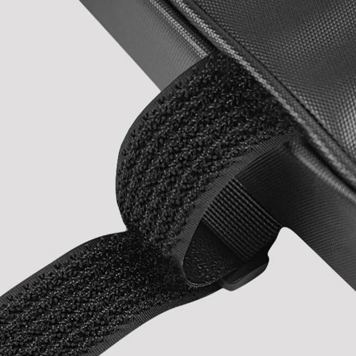 Uchwyt został wykonany z wysokiej jakości, wytrzymałych materiałów, dzięki czemu jest odporny na uszkodzenia mechaniczne i zapewnia długotrwałe użytkowanie. Torbę mocuje się w mniej niż minutę za pomocą trzech pasków na rzep.