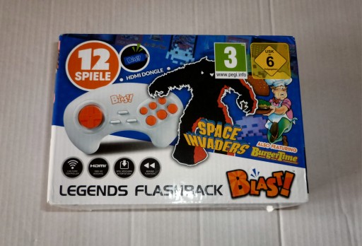 Stan: używana BDB jak nowa w pełni sprawna bez śladów użytkowania. Dołączona instrukcja po polsku. Podpinamy niebieski sterownik WiFi do gniazda HDMI oraz zasilamy go dołączonym kablem USB, zakładamy baterie do pada i już gramy w retro gry z rozdzielczością HDMI. Język angielski, ale można zmieniać na inne. Dodatkowo jest SAVE. Space Invaders oryginalny Taito. Real foto licytowanego przedmiotu.