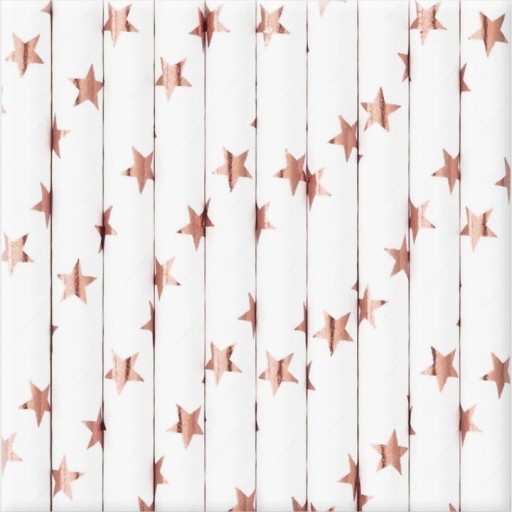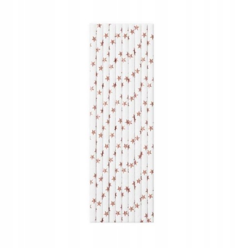 SŁOMKI PAPIEROWE BIAŁE W GWIAZDKI ROSE GOLD 10 szt