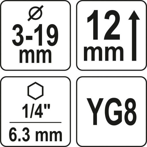- Średnica wewnętrzna: na dole 19 mm, na górze 3 mm - jest to zakres pracy.