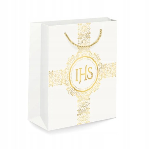 Zapakuj prezent w wyjątkową torbę prezentową Doskonały dodatek, który z pewnością rozweseli każdego. OPIS: kolor - biały, złoty wymiary - ok. 15x20x10 cm ilość - 1 sztuka