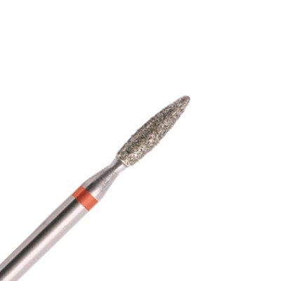 Frez diamentowy, średni w kształcie stożka wykonany jest z najwyższej jakości materiałów: nasypu diamentowego oraz stali nierdzewnej.