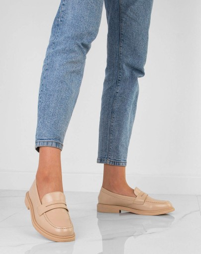 BEŻOWE MOKASYNY DAMSKIE PÓŁBUTY EKOSKÓRA 41