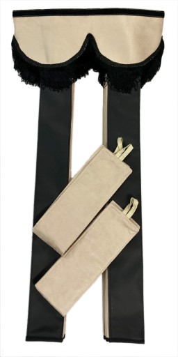FRONT ZASŁON - KANT WYKOŃCZONY JEST MATERIAŁEM SKÓRZANYM, KTÓRY USZTYWNIA CAŁOŚĆ KONSTRUKCJI I UŁATWIA SKŁADANIE PO NOCY