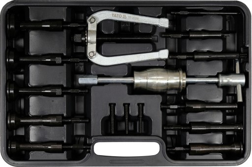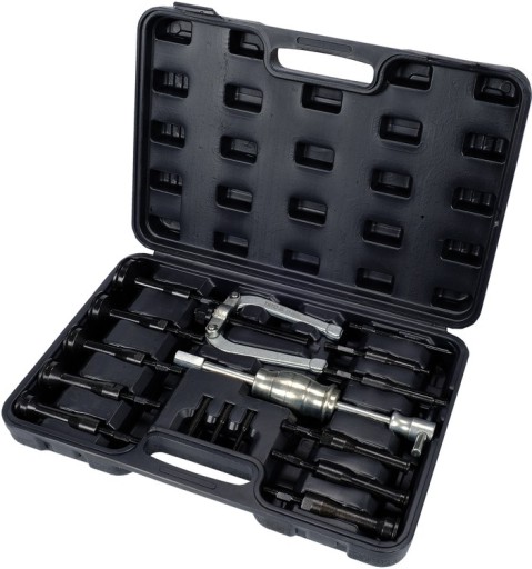Zestaw ściągaczy bezwładnościowych do łożysk tulei i bieżni osadzonych wewnętrznie. Przeznaczony jest do pilotujących łożysk kulkowych, igiełkowych, oraz innych elementów wymagających wewnętrznego ściągacza.