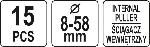 Zestaw służy do wyciągania łożysk, bieżni zewnętrznych i tulejek o średnicy od 8 - 58 mm.