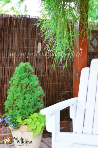 - Zastosowanie: mata wiklinowa to doskonała osłona balkonu, tarasu czy ogrodu. Może być wykorzystywana do zabudowy barierek balkonowych, altan czy kontenerów na śmieci. Mata doskonale sprawdza się także jako ogrodzenie posesji od strony ruchliwej ulicy, ochrona miejsca grillowego przed wiatrem, kurzem, liśćmi lub osłona przed wścibskimi sąsiadami. Może również posłużyć jako roleta czy tło dla roślin w ogrodzie lub w domu.