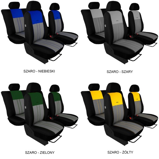 Oferta dotyczy modeli z fotelami standardowymi i kanapą z tyłu - pokrowce nie są przystosowane na fotele kubełkowe i fotele pojedyncze w drugim rzędzie.