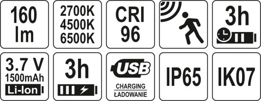 - 3 tryby pracy: 2700K / 4500K / 6500K