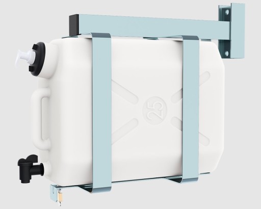 Poręczny zbiornik 20L wyposażony w kran spustowy ułatwiający dozowanie wody.