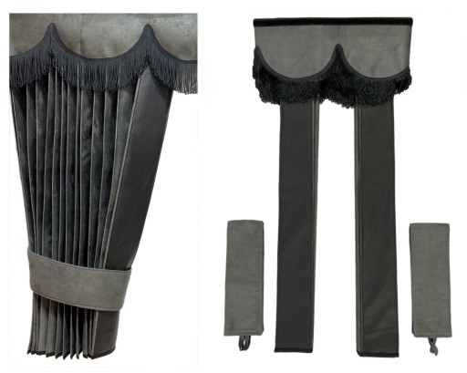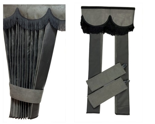 ZASŁONY WYKONANE SĄ Z DWÓCH WARSTW MATERIAŁU ALCANTARA, OD STRONY ZEWNĘTRZNEJ JAK I STRONY WEWNĘTRZNEJ.