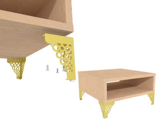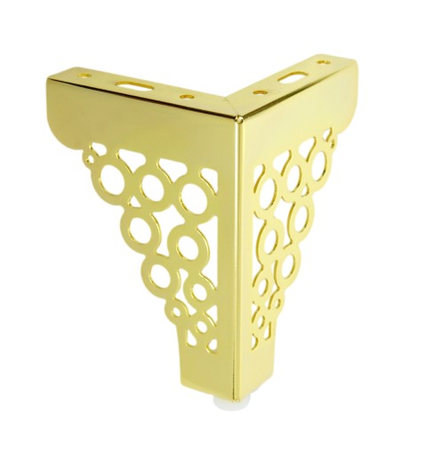 - Nowoczesna nóżka meblowa do mebli skrzyniowych lub tapicerowanych wykonana z metalu ze wzorem kół.