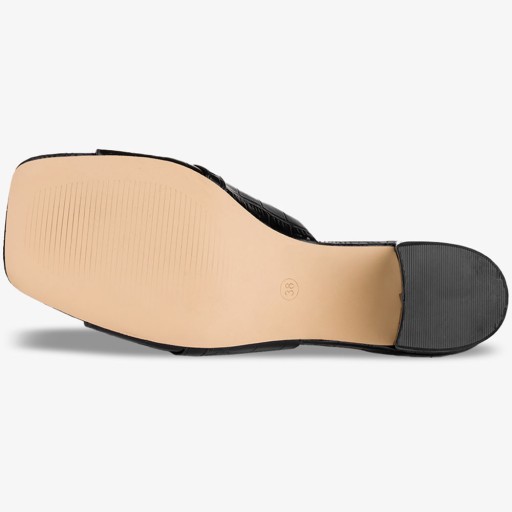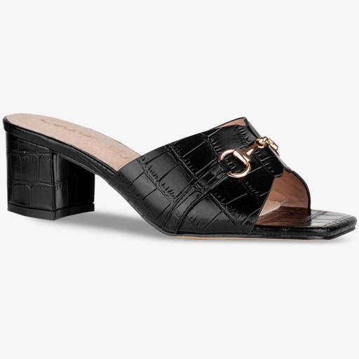 Czarne klapki Casu ze złotą sprzączką na niskim obcasie krokodyli wzór skórzana wkładka D22X5-B