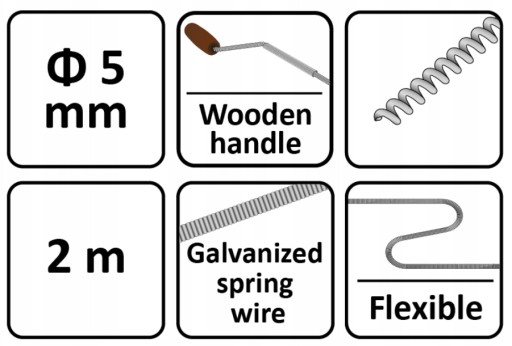 Zastosowana podwójna drewniana rączka zapewnia maksymalną wygodę pracy a specjalnie zaprojektowana końcówka gwarantuje odpowiednie wgryzanie się w zator a następnie jego usunięcie.