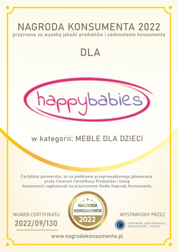 Pragniemy Państwa poinformować, iż otrzymaliśmy certyfikat Najlepsza Marka Mebli oraz Nagrodę Konsumenta edycja 2022r.
