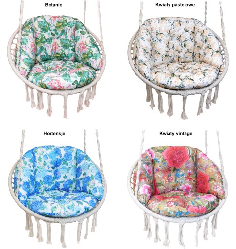 ✅ Projekt poduszki został stworzony specjalnie do huśtawek plecionych (o średnicy siedziska 80cm i wysokości oparcia 60cm)