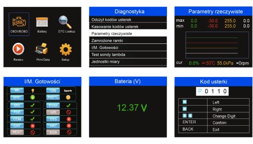Tester jest samodzielnym urządzeniem wyposażonym w kolorowy wyświetlacz, gumową pancerną obudowę, oraz szybki procesor ARM. Zasilany jest bezpośrednio ze złącza diagnostycznego pojazdu i posiada pełne POLSKIE menu (włącznie z pełnymi polskimi opisami kodów usterek).