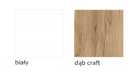 - Korpus i fronty wykonane są z płyty w kolorze arktycznej bieli, blat i łączyny pomiędzy szufladami z dębu craft