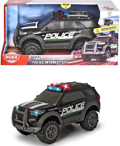 Ford Police Interceptor to pojazd policyjny do zadań specjalnych. Zachwyci każdego chłopca. Pojazd wyposażono w efekty dźwiękowe: imitujące pracę silnika, dźwięki syreny, alarmu i pościgu, a także efekty świetlne: mrugające przednie reflektory oraz czerwone światła koguta. Masywny wygląd i dopracowany design nawiązują do pojazdów pracujących w trudnym terenie. Pojazd posiada otwieraną klapę bagażnika.