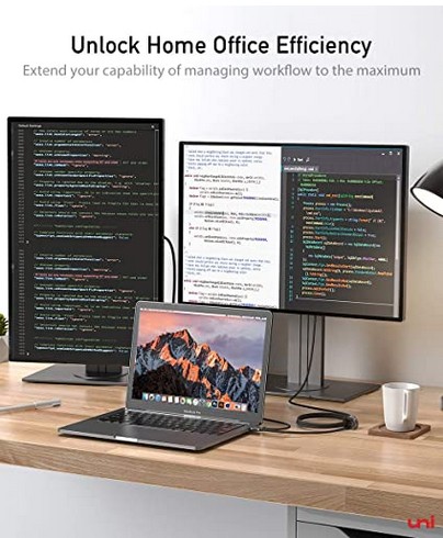 - 【Plug and Play】Plug and Play, nie wymaga adaptera ani sterownika/oprogramowania. Doskonałe rozwiązanie dla USB-C MacBook Pro / MacBook, iMac, Surface Book 2, Pixelbook, HP Envy 13, Galaxy Book i Chromebook. Obsługa jednego lub dwóch monitorów HDMI o rozdzielczości do 4 K @ 60 Hz. Kompatybilny z telewizorami obsługującymi HDMI / monitorami / projektorami do transmisji wideo i audio