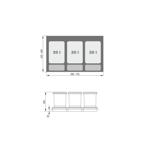 REJS WE14.1829.05.049 Pojemnik na odpady PRAKTIKO 80 potrójny (3x20l)