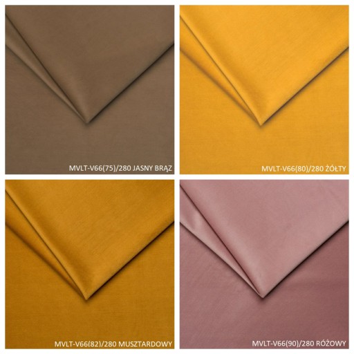 VELVET jest to miękka i miła w dotyku tkanina, która bardzo dobrze się układa. Obecnie spośród wszystkich tkanin dostępnych na rynku Velvet jest najczęściej wybieraną tkaniną przez klientów, ma szerokie zastosowanie w wystroju i dekoracji wnętrz.