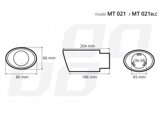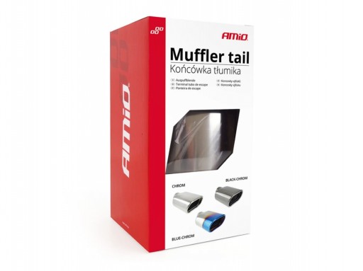 Końcówka tłumika marki AMIO, model MT021BLC o owalnym kształcie i średnicy 86/66mm. Wykonana z wysokiej jakości stali nierdzewnej, co zapewnia odporność na warunki atmosferyczne, spaliny i wysokie temperatury.