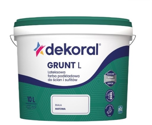GRUNT L przeznaczony jest jako podkład na podłoża o nierównej chłonności i niejednolitym odcieniu. W szczególności polecany jest do malowania tynków, płyt gipsowo-kartonowych, tapet papierowych oraz elementów drewnianych, materiałów drewnopochodnych i elementów z tworzyw sztucznych wewnątrz pomieszczeń. Ułatwia nakładanie farb nawierzchniowych.