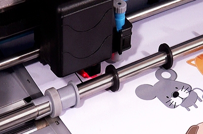 - cięcie różnych nośników takich jak folie flex, flock, folie samoprzylepne