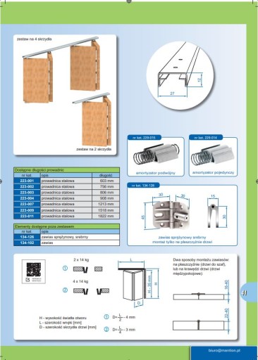 Obciążenie: 14kg/skrzydło (28kg/drzwi).