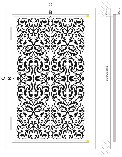 C - ościeżnica (odległość od brzegu ościeżnicy do przylgi/otworu w scianie 3 cm)