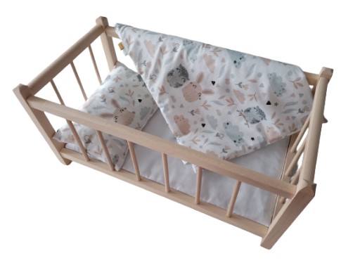 DREWNIANE ŁÓŻECZKO Z KOMPLETEM POŚCIELI (3 elementy)