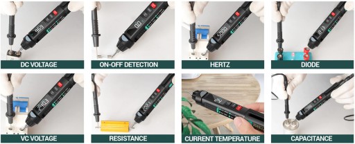 Ponadto charakteryzuje się stabilną wydajnością, wysoką precyzją, automatycznym wyłączaniem po 5 minutach bezczynności w celu oszczędzania energii, testem pojemności/diody/więcej, zabezpieczeniem przed przeciążeniem, testem ciągłości, bezdotykowym pomiarem napięcia (NCV), pomiarem linii zerowej, itp. Idealne narzędzie do użytku profesjonalnego, fabrycznego, szkolnego, entuzjastycznego lub rodzinnego.