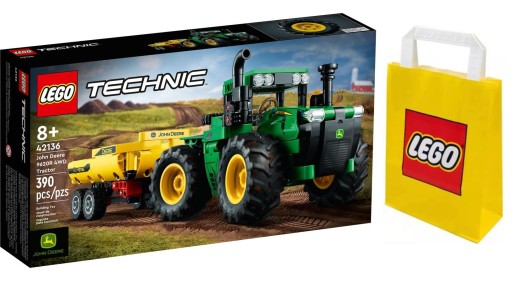 Ośmiolatkom i starszym dzieciom zafascynowanym zabawkowymi traktorami spodoba się zestaw konstrukcyjny LEGO® Technic Traktor John Deere 9620R 4WD (42136). Zaprojektowany we współpracy z firmą John Deere traktor z przyczepą ma sporo realistycznych funkcji. Wyposażony jest w ogromne koła, przegubowy układ kierowniczy i kabinę kierowcy z obracającym się fotelem.