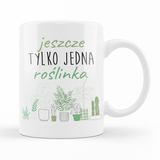 Biały kubek ceramiczny z nadrukiem.